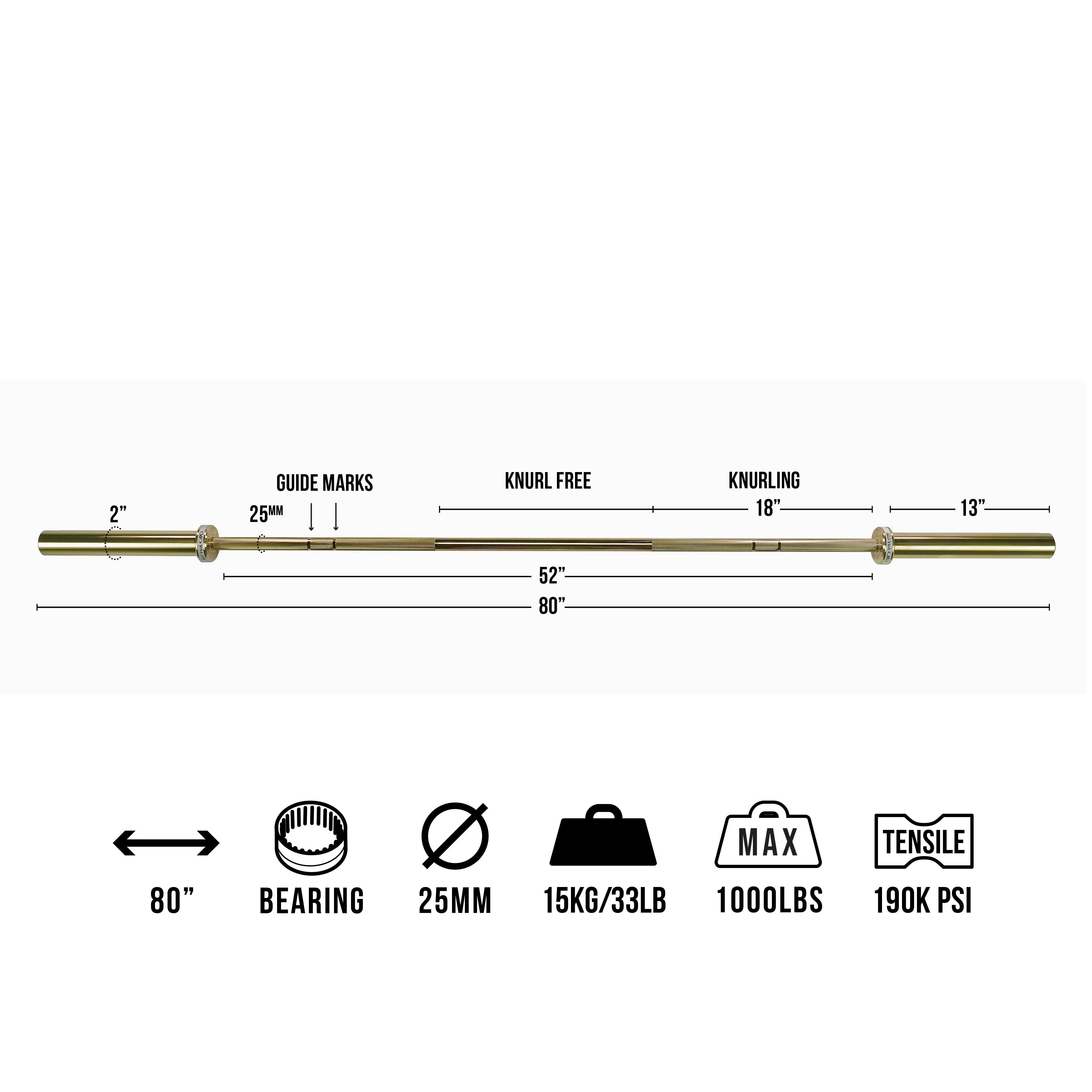 Gold Coated Needle Bearing Barbell 80" 25mm